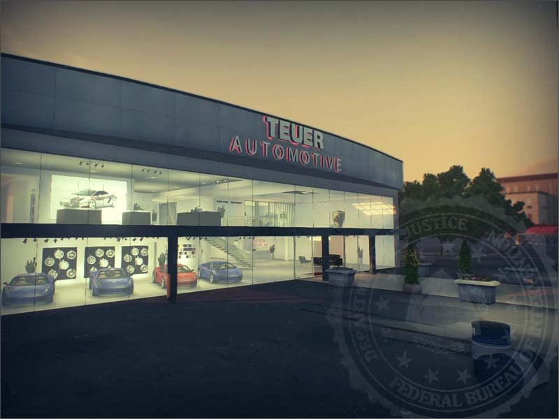 El concesionario Teuer ha recibido hace poco un cargamento de Falcoginis, coches de último modelo. La instalación es una construcción abierta con varias formas de entrar y salir. El robo de los Falcogini tuvo lugar al atardecer, cuando el concesionario aún estaba abierto para el público. Además, al parecer una pequeña explosión cerca del concesionario ayudó a que los asaltantes escaparan a través de túneles subterráneos en reparación, para así evadir el tráfico a esa hora.
